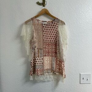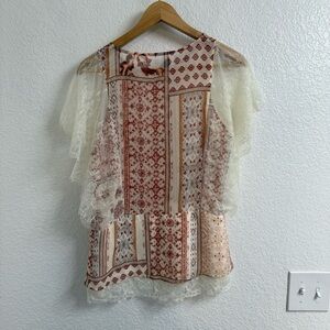 Bailey 44 Lace Short Sleeve Patchwork Boho Blouse Top Size 4
