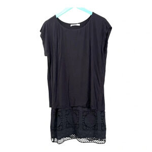 Bailey 44 Layered Tent Overlay Lace Trim Dress Size Medium Black Rayon