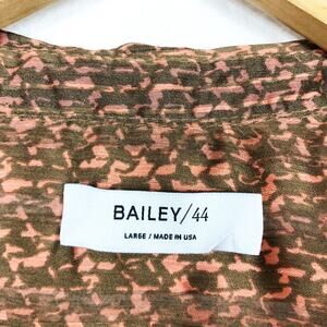 Bailey 44 Malaysia Mini Wrap Dress Size Large Coral Brown Print 70s Billowy