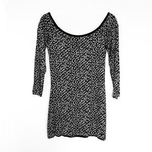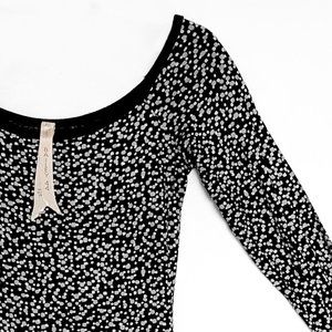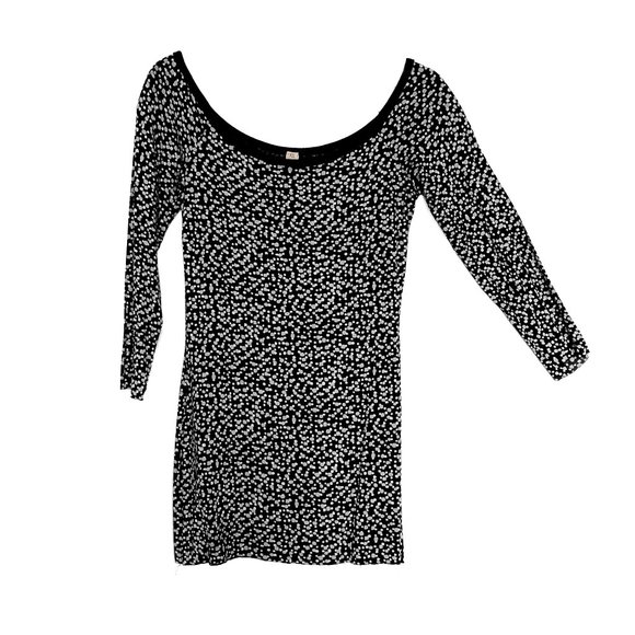 Bailey 44 3/4 sleeve, black top with grey and white polka dots. This shirt is in great condition