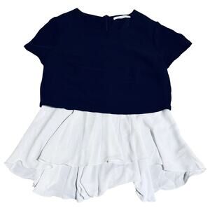 Bailey 44 Revolve Peplum Top Black White Short Sleeve Blouse Women's Size Medium