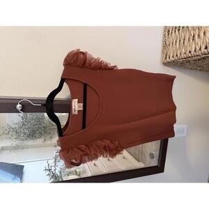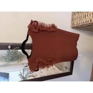 Bailey 44 Rust Ruffle Sleeve Ribbed Knit Top Size S