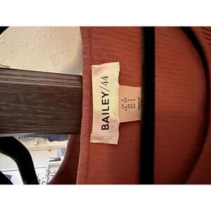 This charming rust-colored ribbed knit top from Bailey 44 features delicate ruffle sleeves made of soft sheer fabric, adding a feminine touch to your outfit. The scoop neckline and fitted silhouette make it perfect for casual or dressier occasions. Size Small, fits true to size. A versatile and stylish addition to your wardrobe!