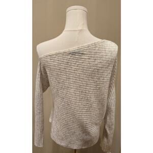 Bailey 44 Slope Merino Wool Off-Shoulder Ribbed Sweater Heather Gray Cream XS