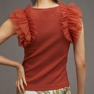 Bailey 44 Copper Orange Tulle Sleeve Ruffle Ribbed Stretch Knit Top. Size XL, new with tags!