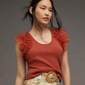 Bailey 44 Top Sleeveless Tulle XL NWT Sleeves Ruffle Ribbed Stretch Knit Orange