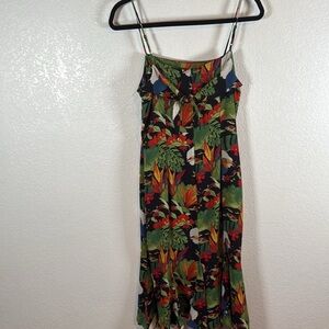 Bailey 44 Tropical Birds and Plants MIDI Dress Size Small Vacation Resortwear
