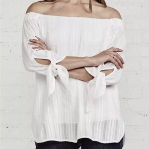 Bailey 44 White Off-Shoulder Blouse with Tie Sleeves