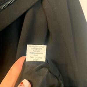 Elevate your wardrobe with the Bailey 44 Motorcycle Jacket in sleek black. This versatile piece, crafted from a blend of rayon, nylon, and spandex, offers a perfect fit with its size S cut. The asymmetric zip closure and stylish pockets add a touch of edgy sophistication, making it ideal for both casual outings and formal events. The solid pattern and short length create a chic silhouette, while the polyester lining ensures comfort. This pre-owned jacket is in excellent condition, ready to become your go-to statement piece.