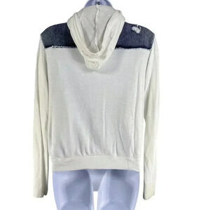Bailey 44 Womens L Denim White Super Soft Stretchy Arms Hood Back Hidden Zipper