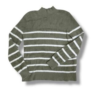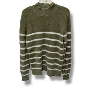 Bailey 44 fuzzy mock neck stripe sweater olive green white