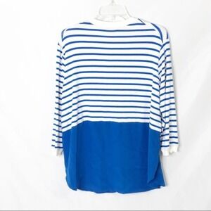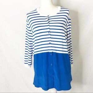 Brand new bailey44 blue striped mixed media casual layering spring fall summer work cardigan