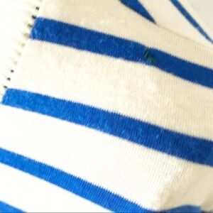 Brand new Bailey 44 cobalt blue top hat top. Button down front. Side seam slits. Blue and white striped upper with solid blue bottom.