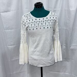 Bailey 44 White Open Knit Bell Sleeve Sweater | Size L, NWT