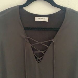 Flattering black v neck top with tie detail + ruched 3/4 length sleeves. Perfect condition! Size L