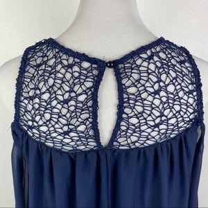 Bailey Blue Cold Shoulder Crochet Trim Sheer Mini Dress Women's Medium Navy NEW