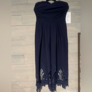 Bailey Blue Navy Strapless Jumpsuit with Floral Lace