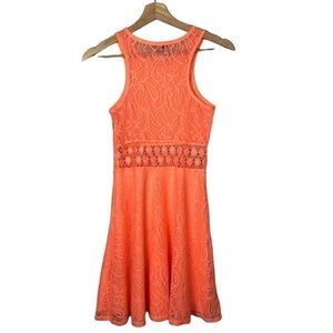 Bailey Blue Neon Orange Daisy Lace Fit & Flare Mini Dress S