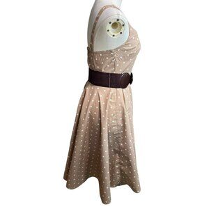 Bailey Blue vintage style taupe polka dot swing dress. Belted. SZ:S