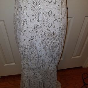 Bailey Blue women's long formal dress size XL cream-colored with gold sequins V back sleeveless nwt.