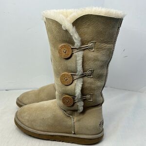 Embellished with a wood-button closure, this plush sheepskin boot is more versatile than ever – fasten for extra warmth, or fold down for a full, fluffy collar. Finished with our signature sole for added cushioning, traction, and durability, it pairs with silky dresses or overalls and a tee.