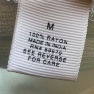 White gauze like rayon top, embroidered flowers on chest, fringed arm holes, 2 ties in back with tassels, size medium. Boho, festival, perfect for the warmer weather. The tassels are a little worn, but the rest of the top is in very good condition.