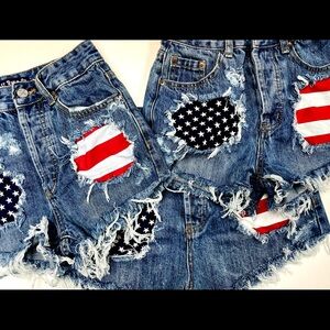 Bailey Ray and Co Patriotic American Flag High Waisted Denim Shorts Cutoffs