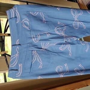 NWT...Stylish blue pants featuring a charming Pink bow pattern. Perfect for casual outings. Check out all pics for details and approximate measurements.