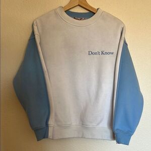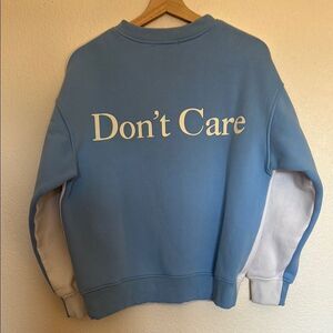 This ultra soft pullover features an oversized fit, color block front & back, front "Don't Know" graphic, and back "Don't Care" graphic. Perfect to lounge around in, hanging with friends, or running errands!