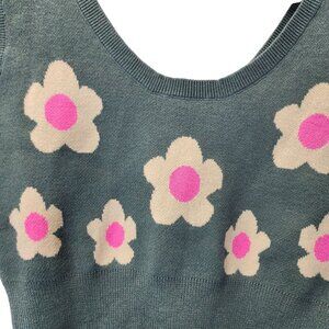 Bailey Rose Green Knit Crop Tank With Pink Daisy Flowers Size XS NWT