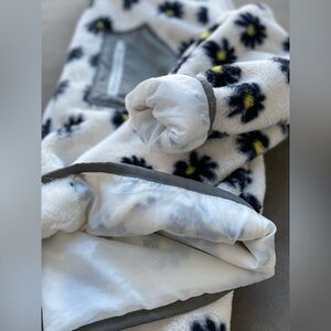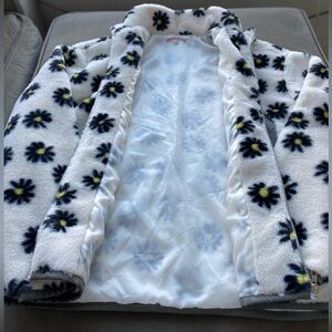 Cozy jacket with floral pattern. Features a convenient zip pocket. Perfect for chilly days. Lightweight