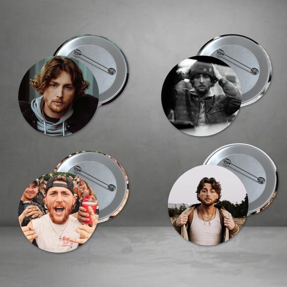Show off your love for country music sensation Bailey Zimmerman with this awesome 4-pack of 1.5-inch pinback buttons! These buttons are perfect for adding a touch of country flair to your backpack, jean jacket, hat, or anywhere you want to display your fandom.
