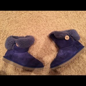 These are great purple/blue bailey button ugg boots bought last year. Only worn for a season and still in good shape. Some sign of wear but still has lots of life left. SO COMFY.