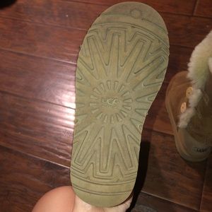 The boots are in great condition overall. The only bad part are the insoles of the boots. The fur has been completely flattened so you’d probably need to buy some new ugg insoles. These boots are a kids size 4 which is equivalent to a women’s 6.