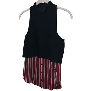 Bailey 44 Layered Top size XS Back zippered closure Sleeveless Layered look Black, maroon, striped