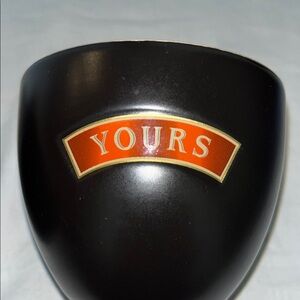 Set of two cups with 'Mine' and 'Yours' labels in orange. Good used condition