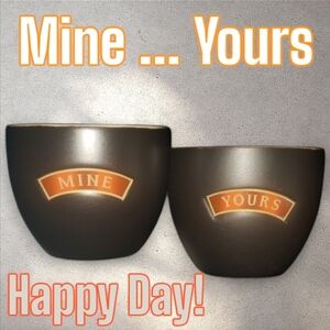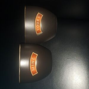 Baileys small cups yours & mine vguc some factory imperfection and small usage imperfection but still very nice black ceramic modern Baileys Irish cream after dinner after work after the day has ended recharge unwind drinking buddies bar barware kitchen after dinner drink cozy relax together togetherness lazy weekend Sunday fun afternoon celebrate everyday celebration celebratory life