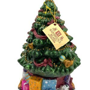 Bainbridge Bears Porcelain Christmas Tree Music Box. Plays “Deck The Halls”. In excellent working condition, some sticker residue on the bottom: 8.5” tall, 5.5” long.