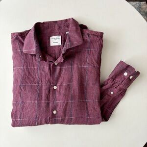 Baird McNutt Men’s Linen Murano Button Down Shirt Size Large Burgundy