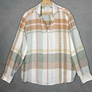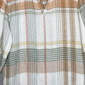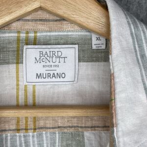 Baird McNutt Murano 100% Linen Plaid Collar Relaxed Pullover LS Shirt Size XL