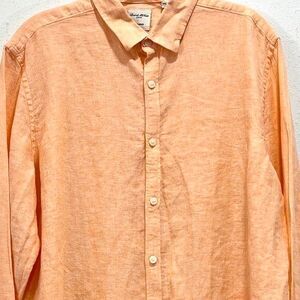Baird Mcnutt Men’s Orange Long Sleeve Linen Murano Button Up Shirt Size Large