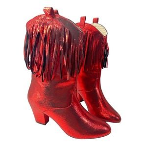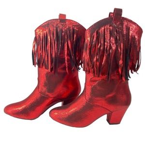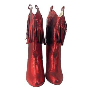 Bait Footwear Women’s Cowgirl Boots Red Metallic Fringe Western Line Dance Sz 10
