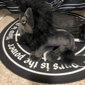 Unique three-eyed plush toy in dark gray with black accents. Perfect for collectors or as a gift.