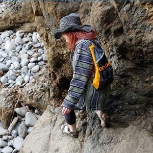 #Hoody Poncho Beach Style Clothing Retro Woven Sweatshirt Blanket Hoodie, Surfer Drug Rug-NWT