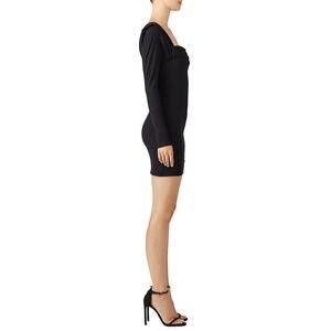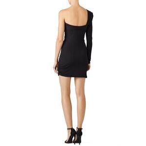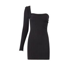 Baja East Dress Striped Drastic One Shoulder Long Sleeve Sheath Mini Black 2