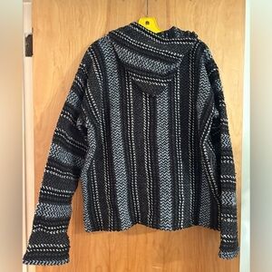 Baja Joe Black & Gray Rug Pullover Sweater with Hood Small