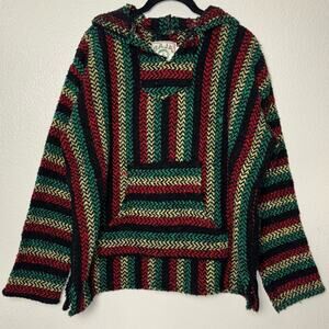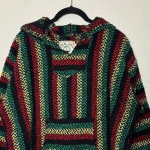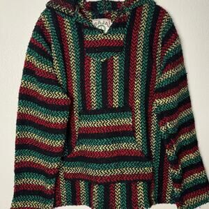 Baja Joe Mexican Baja Hoodie Sweater Pullover Rasta Red yellow green black unisex Medium
