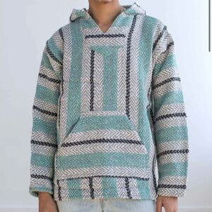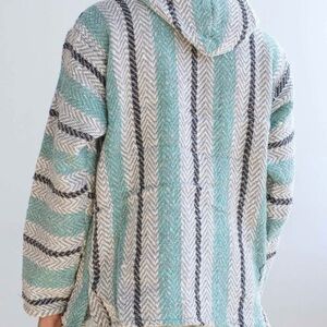 Baja Joe Mint Striped V-Neck Hoodie M EUC
