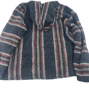 Baja Joe Striped Mexican Hoodie Pullover Jacket Size Large