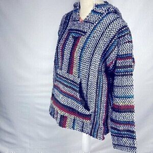 ❄️ Baja Joe Striped Woven Eco-Friendly Bohemian Hooded Sweater Size Small